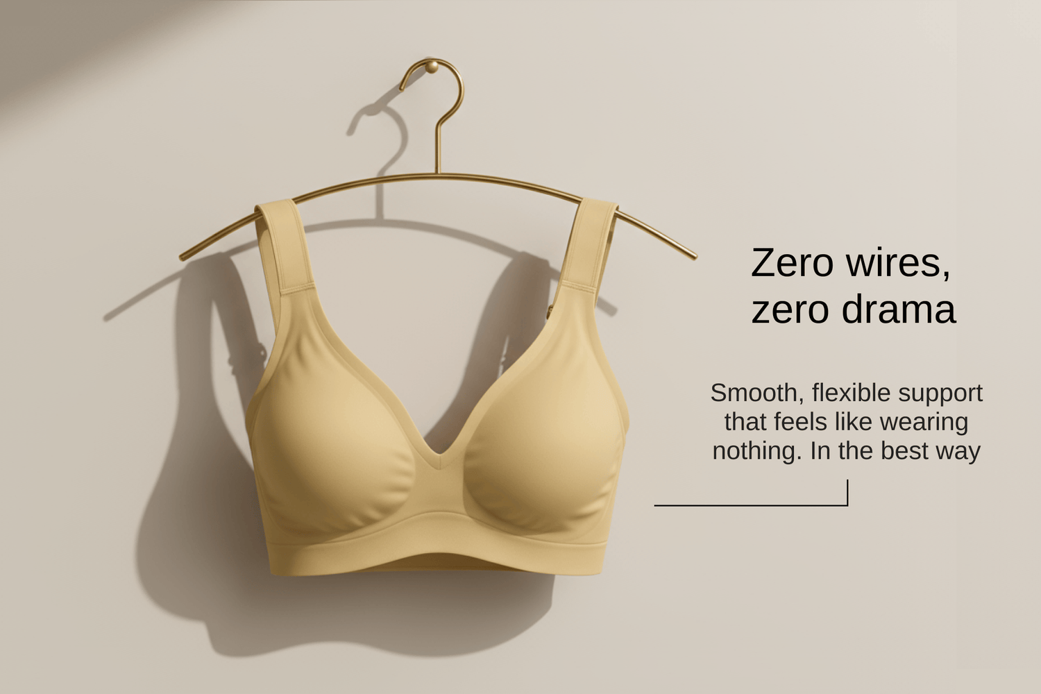 Smooth backs, soft lines, and wireless comfort that stays where it should.